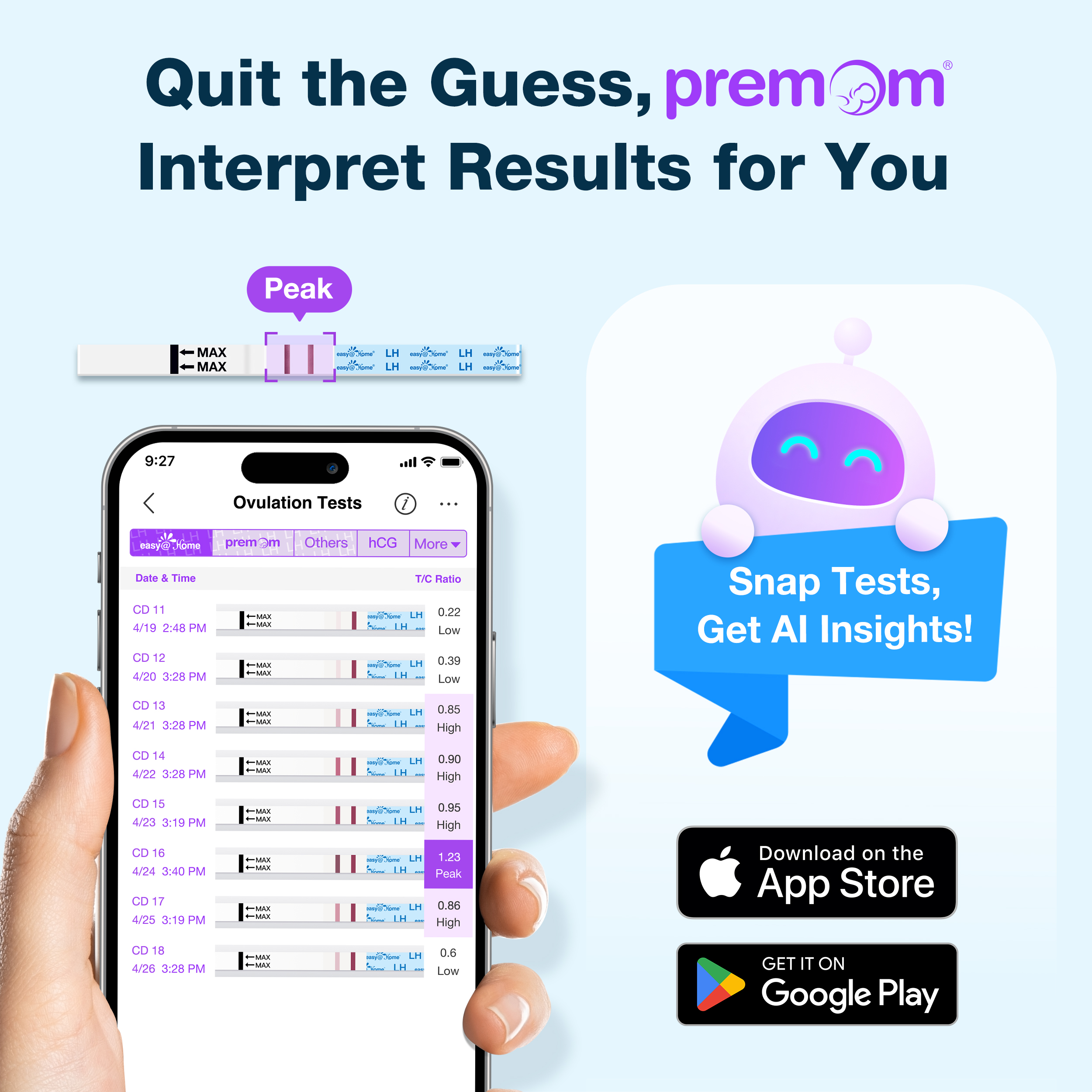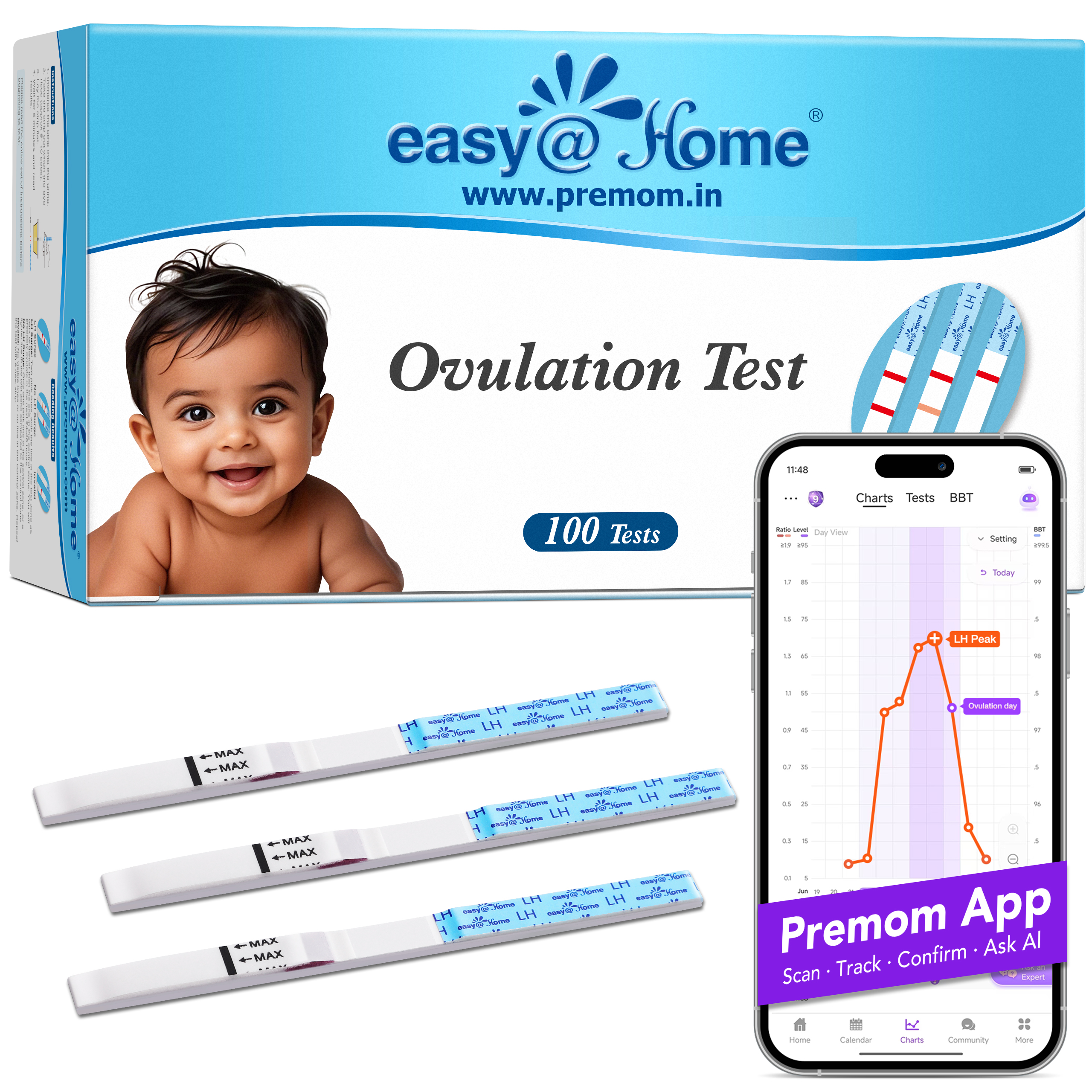 - Easy Interpretation with Premom: No more guessing your ovulation test results! The Premom app, a sister brand to Easy@Home, just scan your tests to get clear and easy-to-read results. Track your fertile days and plan for pregnancy with confidence